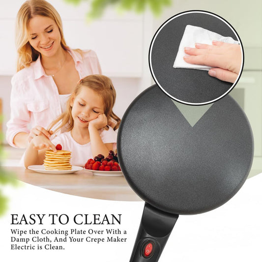 ✨Electric Crepe Maker – 8” Portable Crepe Pan Nonstick with Dipping Plate, Auto Shut-Off, On/Off Switch