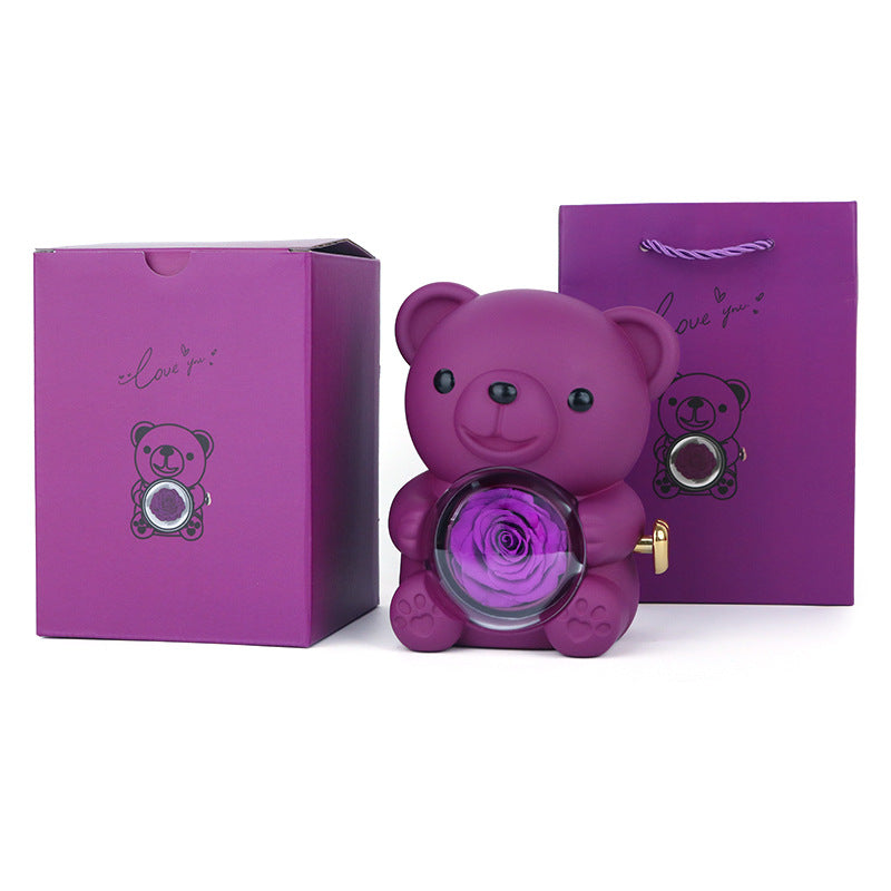 Unique & Cute Bear Design: The adorable teddy bear holds a stunning preserved rose inside a transparent plastic cover. Rotate the golden heart-shaped knob to reveal a hidden jewelry box behind the rose, adding an element of surprise for your beloved one!
